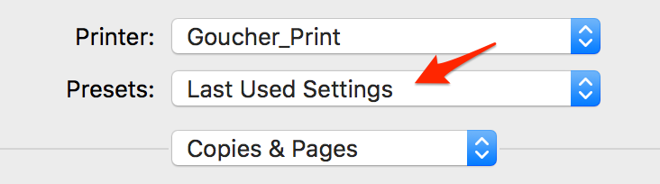2. Ensure the Presets setting displays “Last Used Settings”