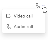 - Select the Meet Now button on the toolbar and select Audio Call or Video Call to start a call.